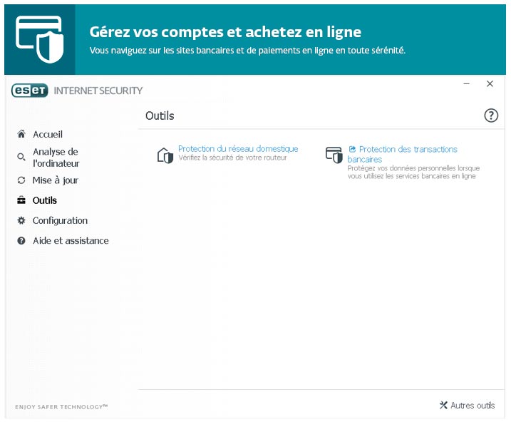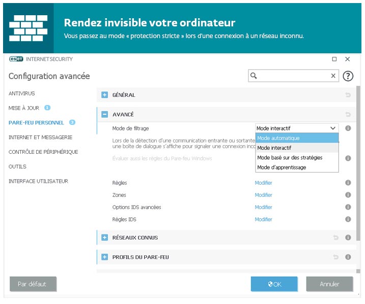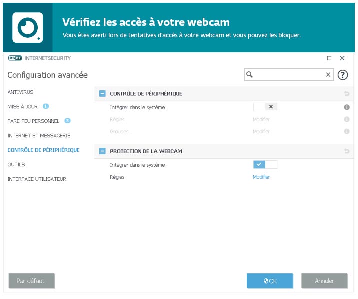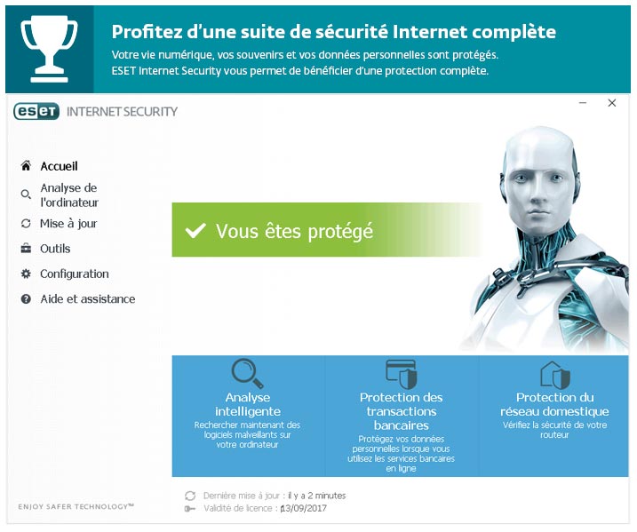 ESET Internet Security Captures écran Découvrir en images les logiciels de sécurité antivirus ESET Accueil Eset ESET NOD32® Antivirus ESET Internet Security® ESET® Multi-Device Security ESET Smart Security® Premium ESET Mobile Security Android™